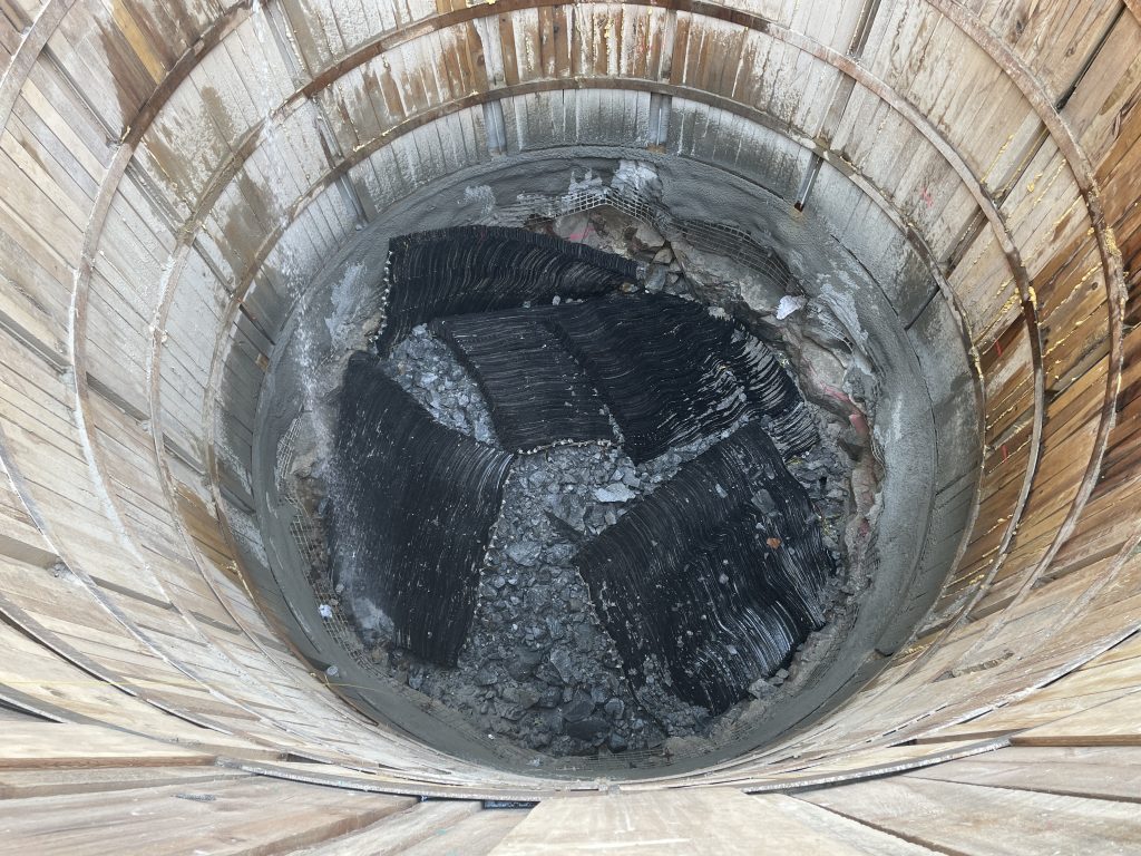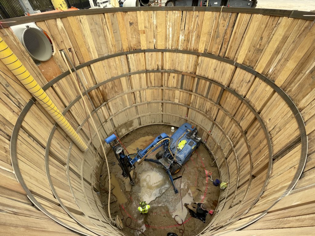 Below the water table of the river, controlled blasting will be performed using explosives to demolish bedrock for tunnel and water main installations.